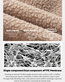 - Key Fabric Technology: Hybrid construction utilizing areas with single and bi-component ePTFE membranes for balanced weather protection and air permeability (~7.9 mm/s).
