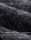 - Fabric Composition: 50.7% Australian Merino Wool (19.5μm), 49.3% Antimicrobial Polyester